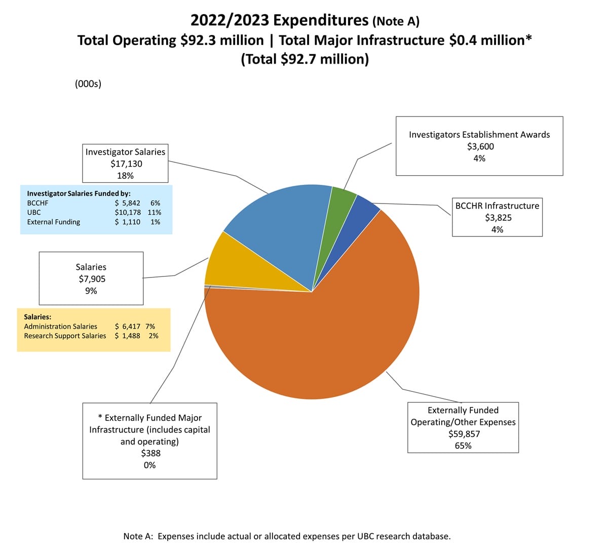 The 2022/23 total research revenue and expenses of the BC Children’s Hospital Research Institute were approximately $92.7 million, including grants, contracts, and agreements received from foundations, granting agencies and organizations, government, hospitals, and universities.